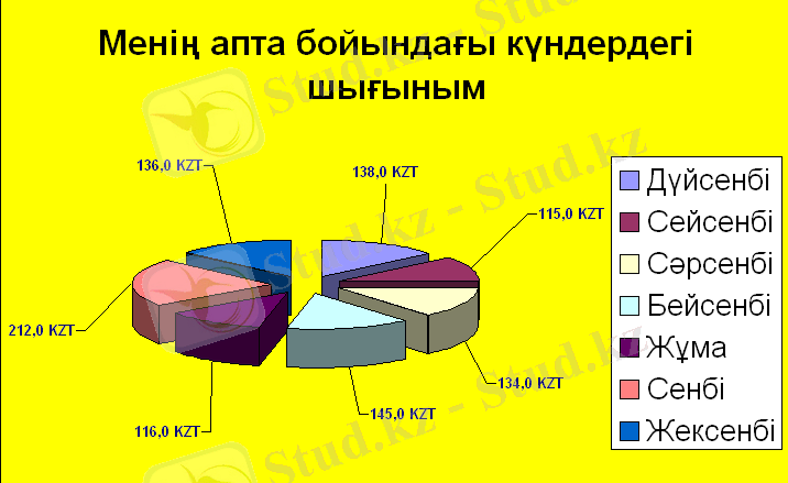 1. Білімділігі: Бүгін біз MS Excel программасының тағы бір мүмкіндігімен танысқанда оны іс жүзінде де пайдалана отырып, мүмкіндігінше өзімізге түсінікті дәрежеде ұғынуға тырысып көрейік. Диаграмма - мәліметтерді көрнекі түрде кескіндеп көрсетудің өте бір әдемі түрі. Мәліметтер кесте түрінде берілгенде оларды салыстыру, талдау оңай шаруа емес. Ал диаграмма өзіміз математика мен сызудан білетініміздей көптеген нәтижелерді бірден аңдап, тіпті сандық мөлшерлеріне қарамай-ақ ненің не екендігін түсінуімізге мүмкіндік береді.