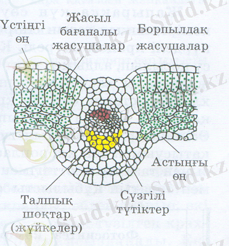 дәндері бар, фотосинтез заттар жапыраққа орналаспа арасында