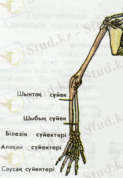 Адамның қолы -қары, білек, алақан сүйектерінен тұрады. Қол қары тоқпан жілік, білекте-кәрі жілік пен шынтақ, алақанда саусақ сүйектері болады. Тоқпан жілік жауырынмен жалғасып тұрады. Аяқ сан, балтыр, табан сүйектерінен құралады. Санда ортан жілік, балтырда асықты жілік пен шыбық сүйек болады.