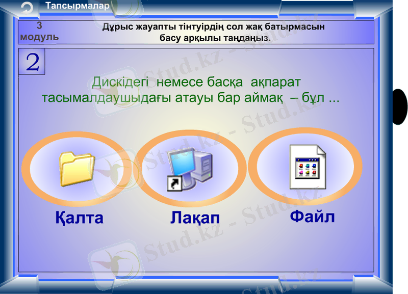 Информатика сабағы: Файлдар, бумалар және жарлықтар
