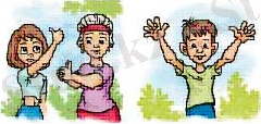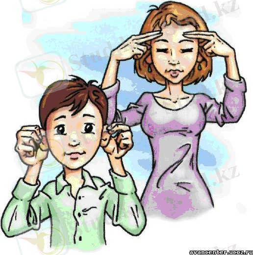 Нұсқау: Берілген жест түрлерін қимылмен көрсету, есте сақтау. Мұғалім кез-келген ретпен айтқан уақытта жаңылыспай орындай білу керек.