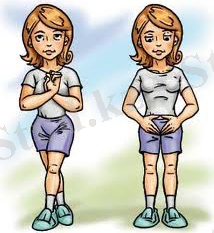 Тобықтарымызды айқастырамыз, алақандарымызд бір-біріне беттестіріп айқастырып, саусақтарымызды кілт сияқты ұстаймыз.