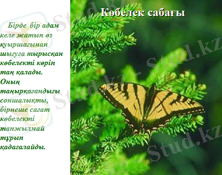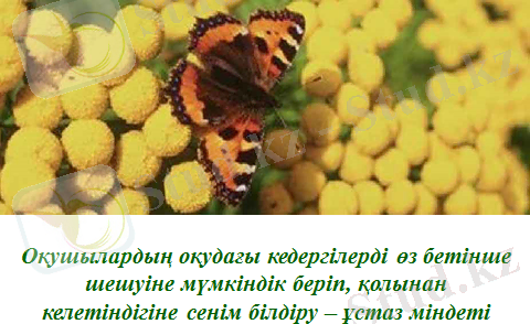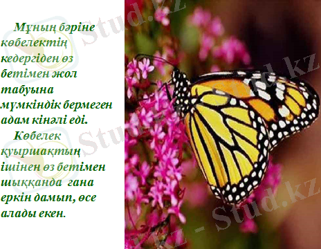 Бұл көбелек сабағы мұғалімдерге ой салды. Осы сабақты көріп отырып, сабақ беруде мұғалімдер шыдамдылық, төзімділік танытып, оқушылардың тапсырманы өздігінен орындауына, проблемадан өздігінен шығуына мүмкіндік беру қажет екенің, оларға әрқашанда сенім білдіру маңызды екенің түсінді. «Сыртқы реттеудеден», «өзіндік реттелуге» ілгерлеу біздің басты мақсатымыз екенің, соның нәтижесінде оқушы бойында өзіне деген сенімділікті, табандылықты, шыдамдылықты қалыптастыра алатынымызды түсінді.