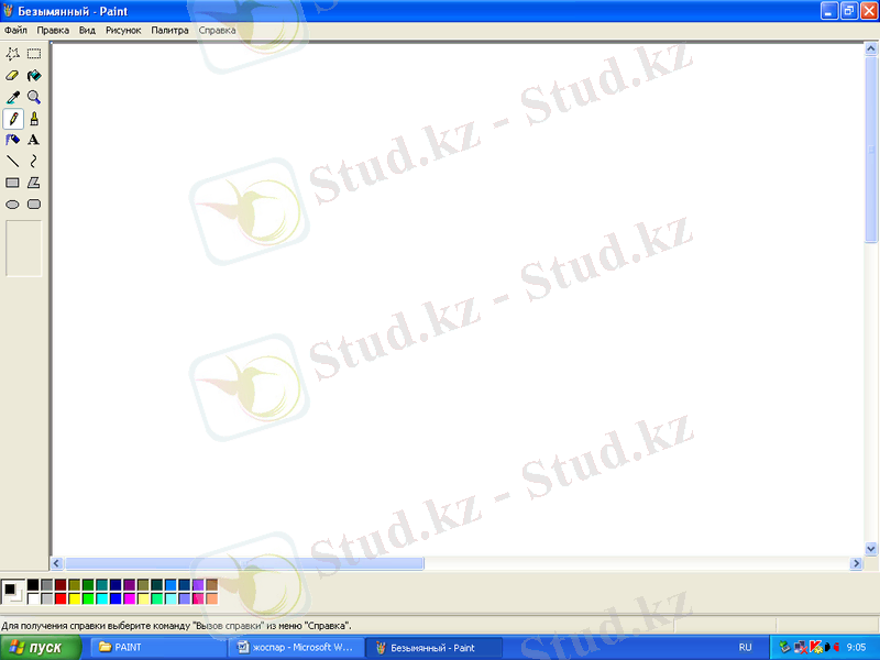 Командалар орыдалғаннан кейін, экранға Paint графикалық редакторының терезесі шығады.