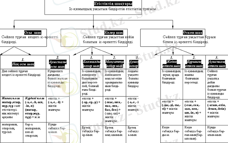 1. Шақ түрлерін сызбаға түсіріп, түсіндіріп бер.
