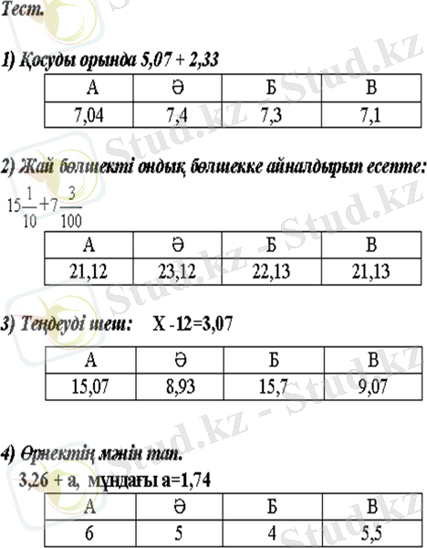 V. Тест тапсырмасы