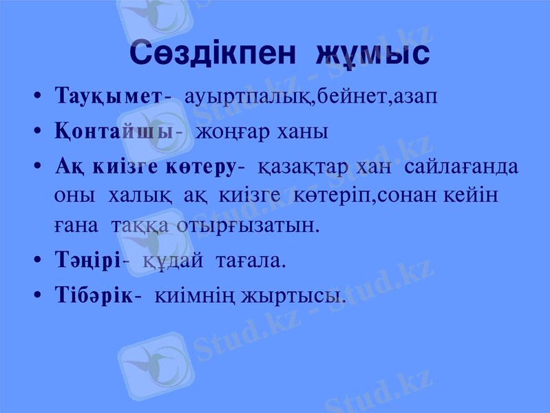 жаңа мағлұматтармен кеңейте отырып, тарихи