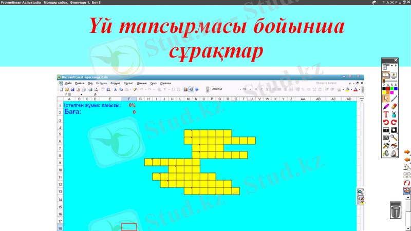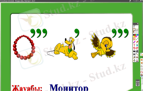 Сабақта қолданылатын көрнекті құралдар : компьютер, интер. тақта.
