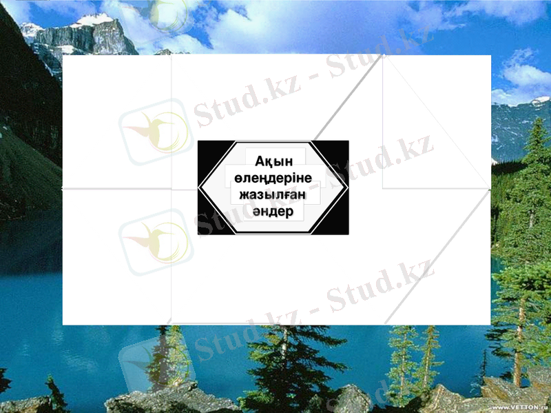 2-оқушы: Қазақ халқы өзінің бар арман-мақсатын, мұң-қайғысын, үміт-тілегін Мұқағали мұрасы арқылы жалғанның жарығына жария етті. Оның өлеңдеріндегі образ- кілт сөздің қайталанып келуі музыкалық өрнектің де міндетін атқарғанын, кейіннен ақын жырларына жазылған әуен-саздарынан байқалады.