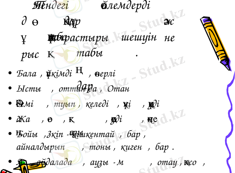 - жаңа сөздер мен сөз тіркестерімен таныстыру