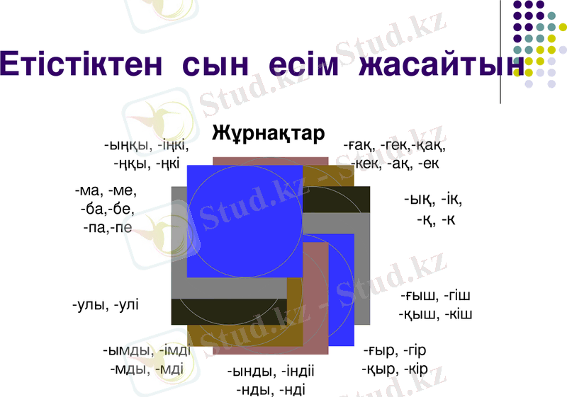Жауабы: жабысқақ, ашық, білгіш, тапқыр, ұялшақ, үйінді, аспалы, шыдамды, бөспе, көтеріңкі