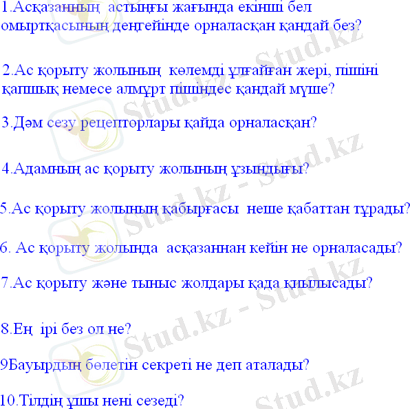 Дамытушылық мақсаты: Әрбір ас қорыту жолдарының ерекшелігі