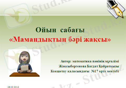 Тақырыбы: «Мамандықтың бәрі жақсы»