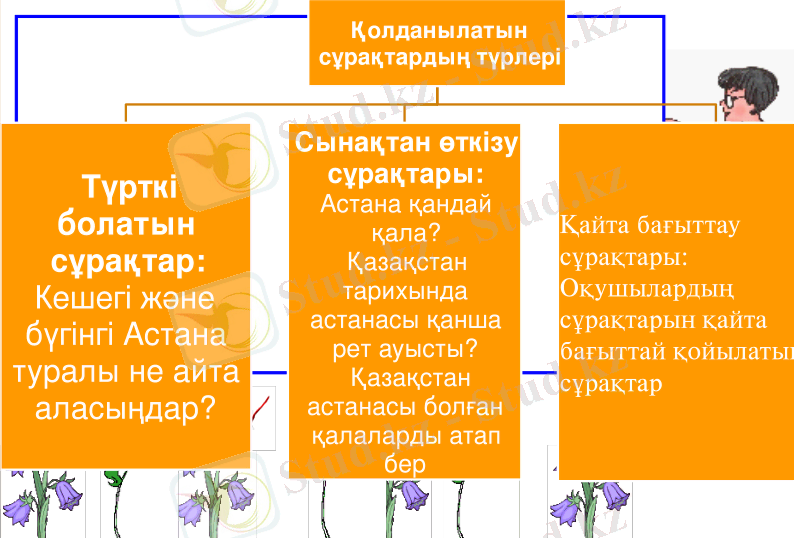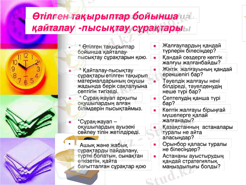 Интерактивті тақтада берілген сұрақтарға байланысты слайдтар шығарылады.