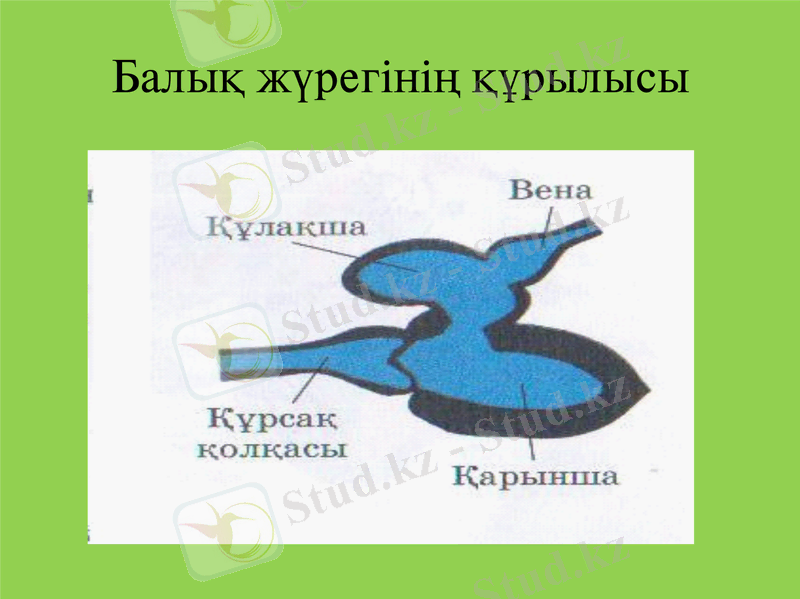 Балық:жүрегі екі қуысты, бір қарынша және бір құлақша.