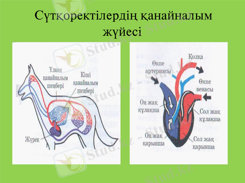 Енді суреттер бойынша жануарлардың қанайналым мен жүректерін салыстырамыз.
