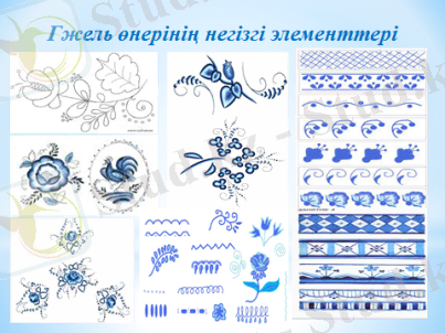 7, 8, 9- слайд. Гжель өнерінің негізгі элементтері .
