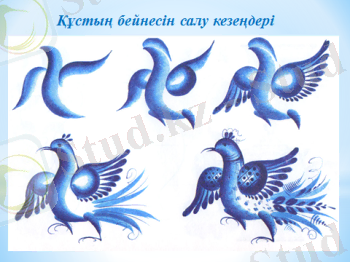 - топ: Бұлбұл құстың бейнесін өрнектеп салып, түспен бояу;