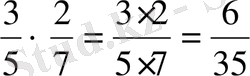 2) алымдарының көбейтіндісін алымына, бөлімдерінің көбейтіндісін бөліміне жазамыз;