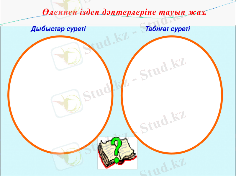 2- тапсырма. Өлеңнен дыбыстар және табиғат суреттелген жерлерді тауып жаз.