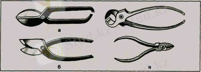 Слесарлық қол қайшылары (а, 6) и тістеуіктер