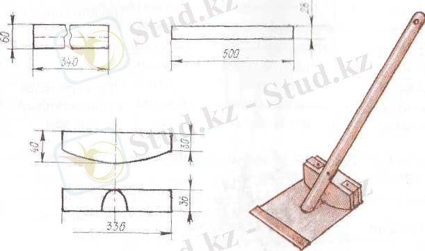 Қолдарына техникалық сызбаларды таратып беремін. Оқушыларға техникалық сызбаға қарап күрек жасауға қажетті бөлшектерді жасап алу тапрсырылады.