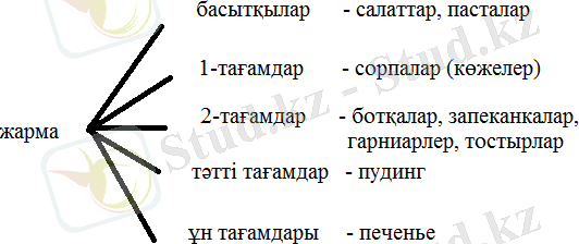 Көрнекілігі: дайын тағамдар, кітаптар, журналдар, схема