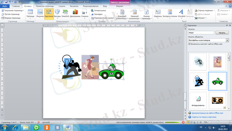 3. Clipart коллекциясынан суреттерді алып орналастыруға;