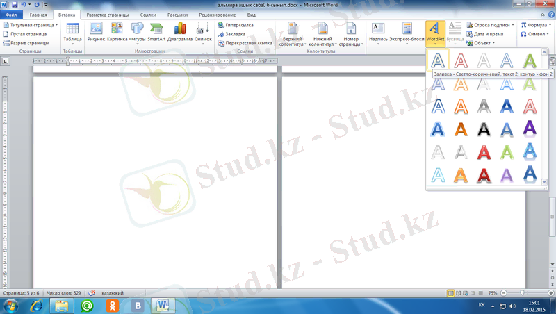Word 2010 мәтіндік процессорында графикалық объектілер мен көркем жазуларды енгізу