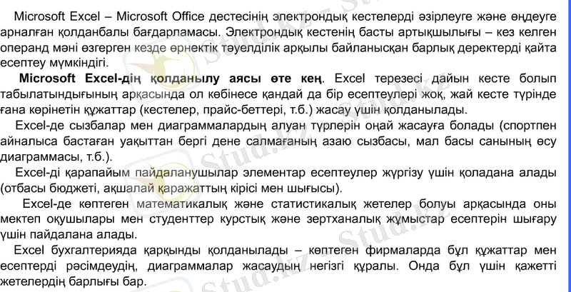 Microsoft Excel электрондық кестелерін сандық модельдеуде қолдану