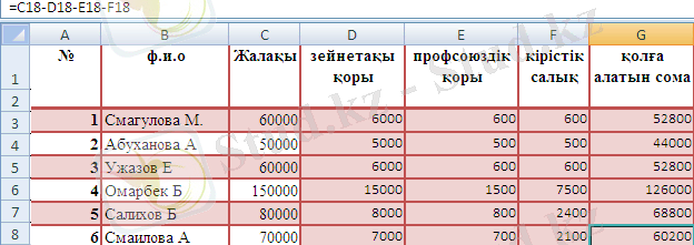 - Осы формуланы В4:В22 ұяшықтарына көшіріңіз (автотолтыру функциясын, Түзету/КөшіружәнеТүзету/ Енгізубатырмаларының өзіңізге ыңғайлы біреуін қолдануға болады) .