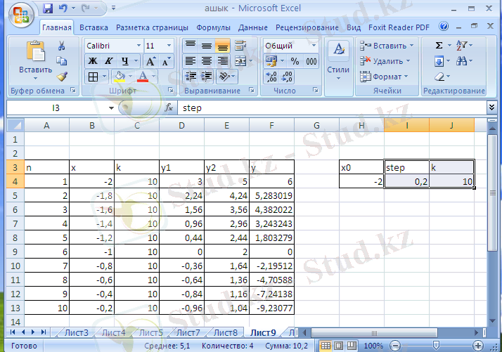 Бұл х-тің бастапқы мәніне І2 ұяшығының мәні, яғни қадамы қосылатындығын білдіреді. Қадам тұрақты 0, 2 тең болғандықтан абсолютті адрестеуді қолданамыз.