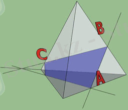 Жаңа тақырыпты түсіндіргенде стереометрия оқулықтарындағы қажетті сызбалардың барлығы 3d - үлгілерімен алмастырылып, көрсетілім ретінде пайдаланған дұрыс (1-2 - суреттер) . Әрбір үлгіні барлық қырларынан қарау, кеңістіктегі бейнені, материалды дұрыс түсінуге септігін тигізеді. «Көпжақтардың қимасы» тақырыбындағы тапсырмалар, әсіресе уақытқа берілгендерін шешу біраз қиындық туғызады. Бұл тақырыптарда оқушылар жұппен жұмыс істесе, түсіну тиімдірек болады.