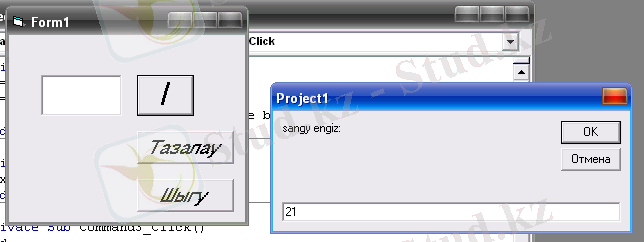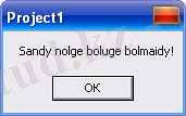 If b = 0 Then MsgBox ("Sandy nolge boluge bolmaidy!") Else c = a / b: Text1. Text = c