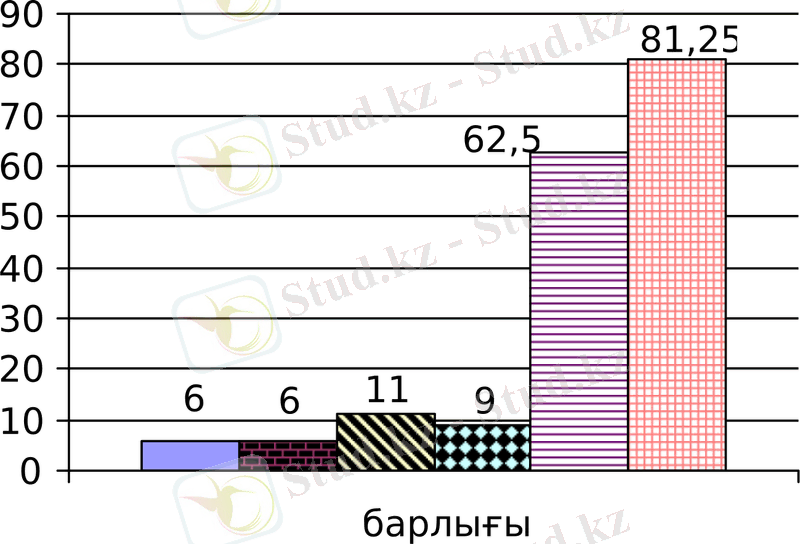 5. «Барлығы» бағанасы деректері негізінде диаграмма тұрғызыңдар.