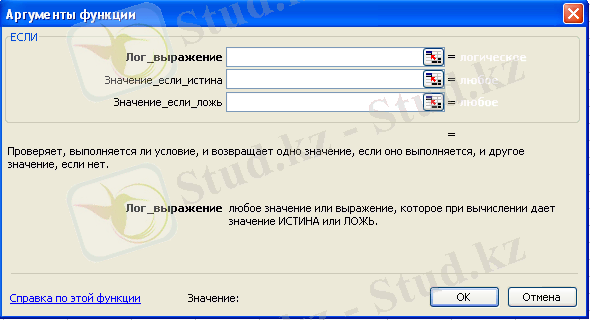 Бір шамамен екінші шаманы салыстыру үшін «ЕСЛИ» логикалық функциясын пайдалануға тура келеді. Пайда болған терезеде «Логик. выражен. » атты өріске шартты жазамыз. Қажет болған жағдайда «Значение-если-истина» және «Значение-если-ложь» атты өрістерге мәндер жазамыз.
