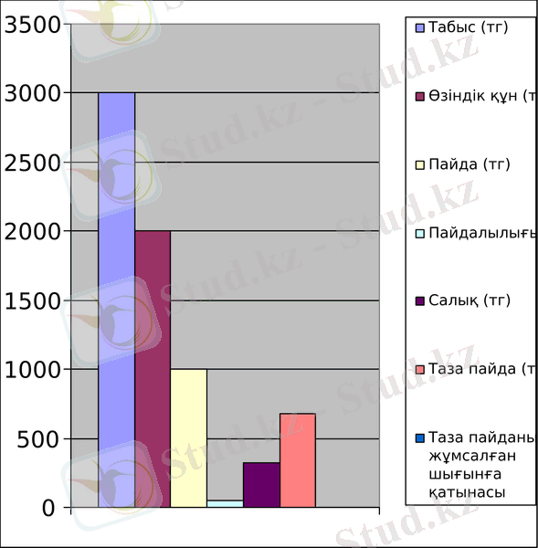 Моделдеу объектісінің негізгі параметрі табыс, өздік құн, пайда, пайдалылық, пайдадан түсетін салық.