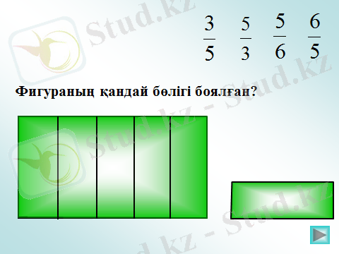 2 тапсырмасы. Бұрыс және дұрыс бөлшектер берілген суреттер бойынша бөліктерді табу есептерді тақтаға слаид арқылы көрсетіледі