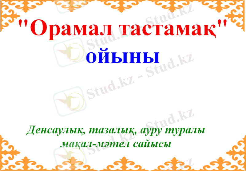 ә) «Орамал тастамақ» ойыны. Денсаулық туралы мақал-мәтел сайысы