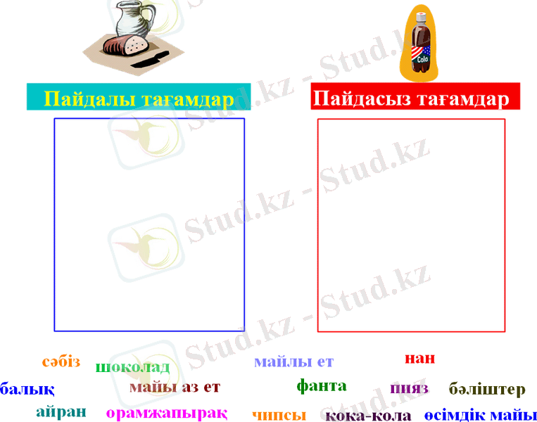 б) «Пайдалы және пайдасыз тағамдар» сызбасымен жұмыс. (слайд)