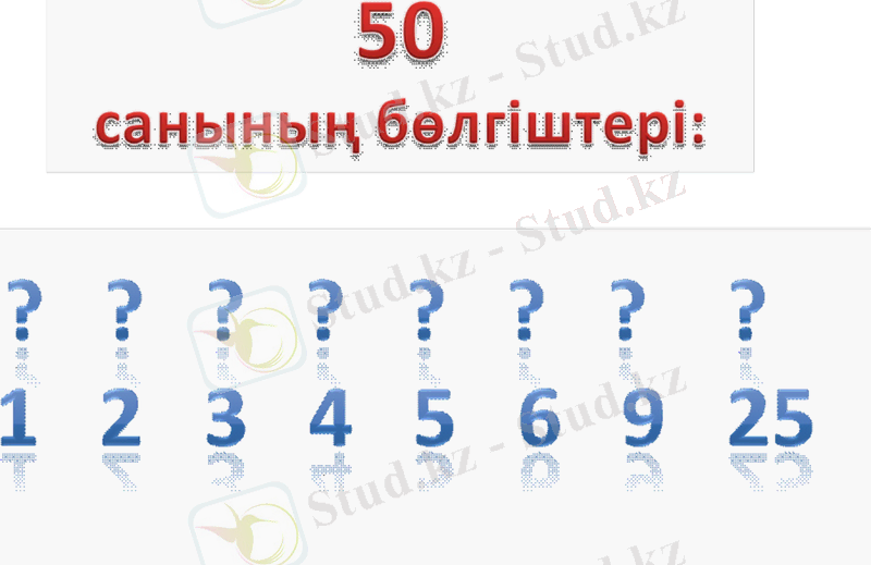 Барлық сандардың бөлгіштерін табыңыз: 50, 7, 829, 31, 24, 12, 23, 9, 100.