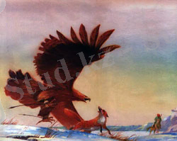 Қазақ халқының кең тараған аңшылық өне - рінің бірі- бүркітпен аң аулау. Бұл ептілікті, тапқырлықты қажет етеді. Бүркіт жемтігін ауларда қара күшке мініп қаһарланады. Арпалыс кезінде бүркіт түлкі мен қасқырды да аулайды.