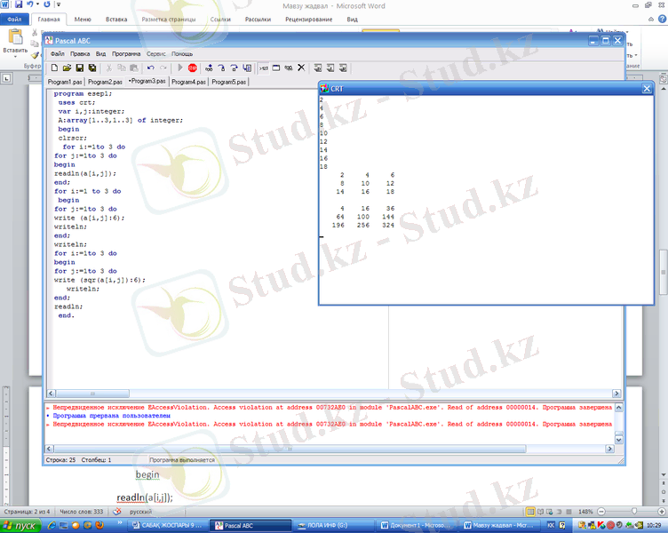 1-есеп. А(3, 3) ) жиым элементтерінің квадраттарын табатын программа құру