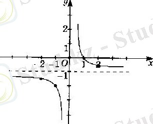 5. x < 0 болғанда y < 0 ; x > 0 болса, y > 0 болады, немесе x ∈ (-∞ ; 0) болса, онда y < 0, ал x ∈ (2; +∞ ) болса, онда y > 0 болады. (-∞ ; 0) және (0; +∞ ) аралықтарда функцияның графигі кемімелі. Экстремум нүктелері болмайды.