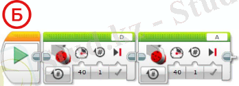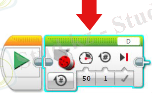 2 топ . Бастапқы жағдайда роботтың қолы төменге бағытталған. Робот қолын 0, 50 айналымға көтерсін, содан соң Рульдік басқарма блогын қолданып алға қарай 1 айналым жасасын.