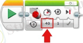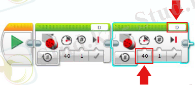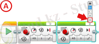 4. Ол үшін Үлкен мотордың тағы бір блогын қосып, оны алдыңғы блокпен байланыстырыңыз. Қуаттылығына 40 шамасын қойып, одан кейін портты А-ға ауыстыру үшін, D әрпін басыңыз.
