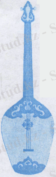 7. Қыл қобыз - Екі ішекті аспап. Шек жылқының қылынан жасалған. Ағаштан шауып жасалған.