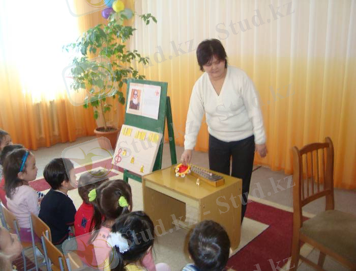 - Ал оркестрдің жетекшісін қалай атайды? Дұрыс, дерижер. Ендеше біздер оркестр құрып ойнайық: халық әні - «Сәулем - ай»; Байділдаев ән: «До-ре-ми»; Құрманғазы «Ақсақ киік».