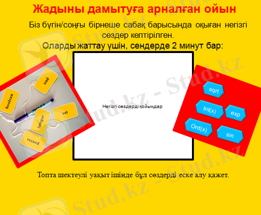 2 топқа тақырыптық түйінді сөздерді тапқызамын.