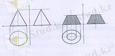 Конусты жазықтықпен қиғандағы алынған кескіннің проекциясын тұрғызу.